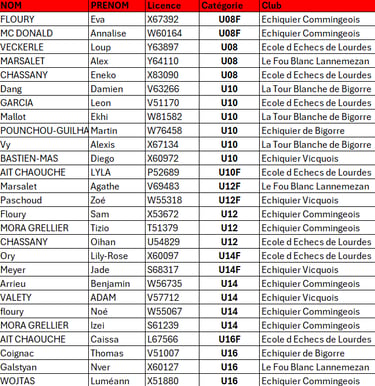 Les enfants des Hautes-Pyrénées qualifiés pour le championnat Régional Jeunes qualificatif pour les Championnat de France 2025.