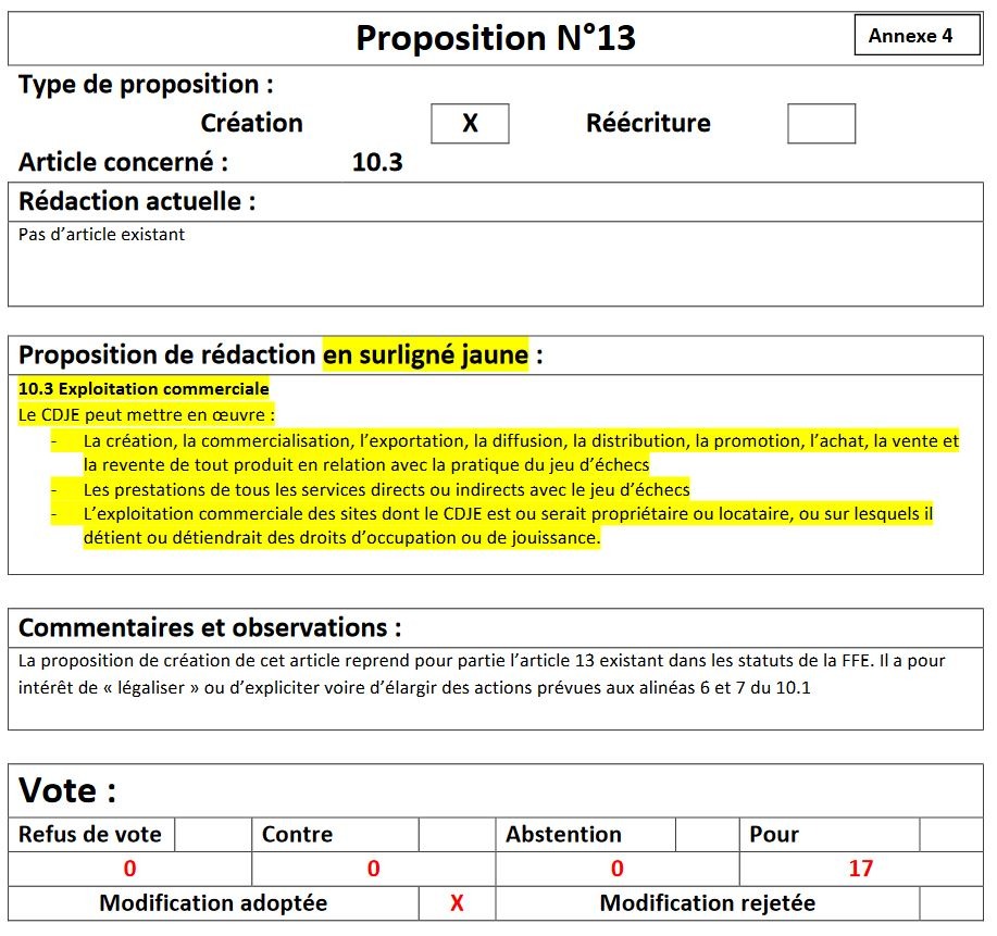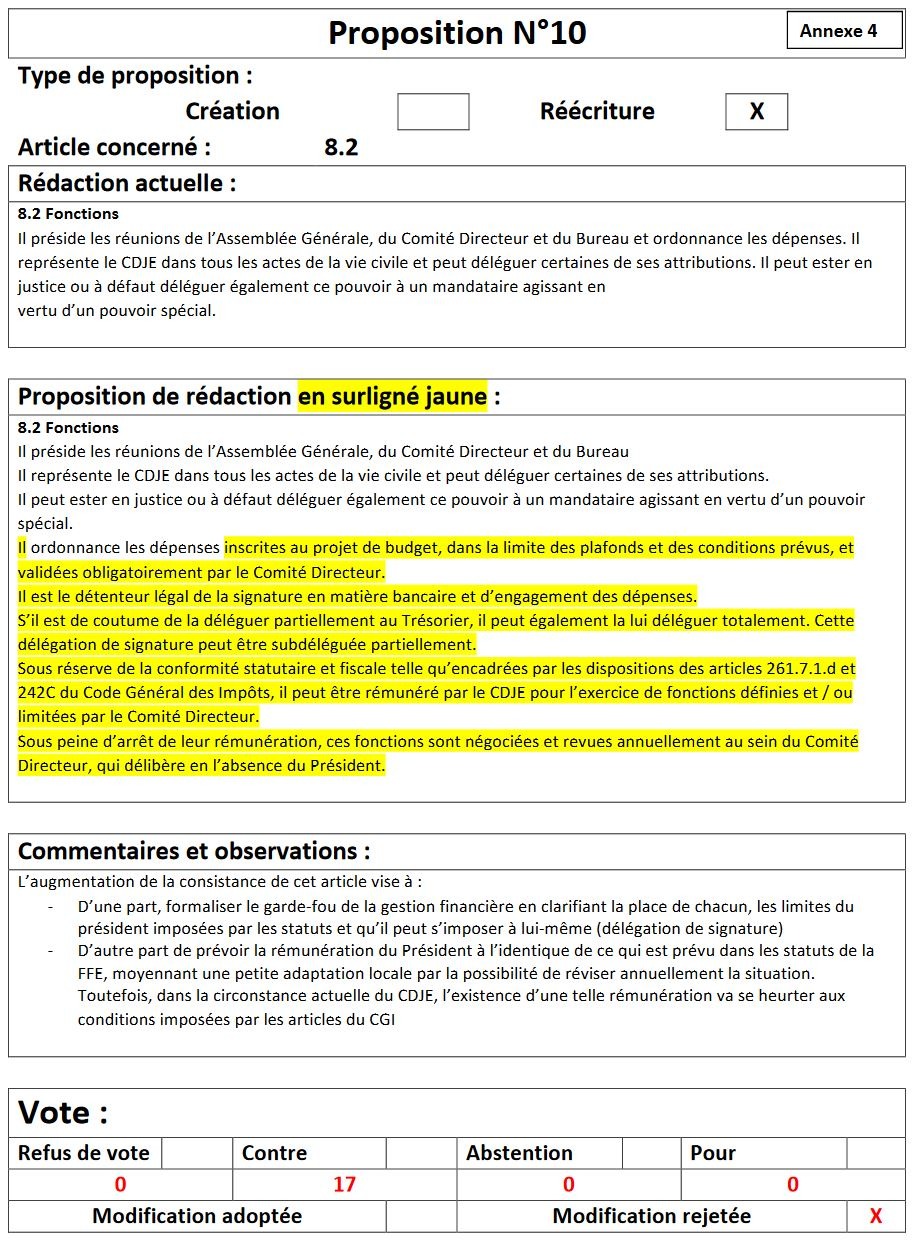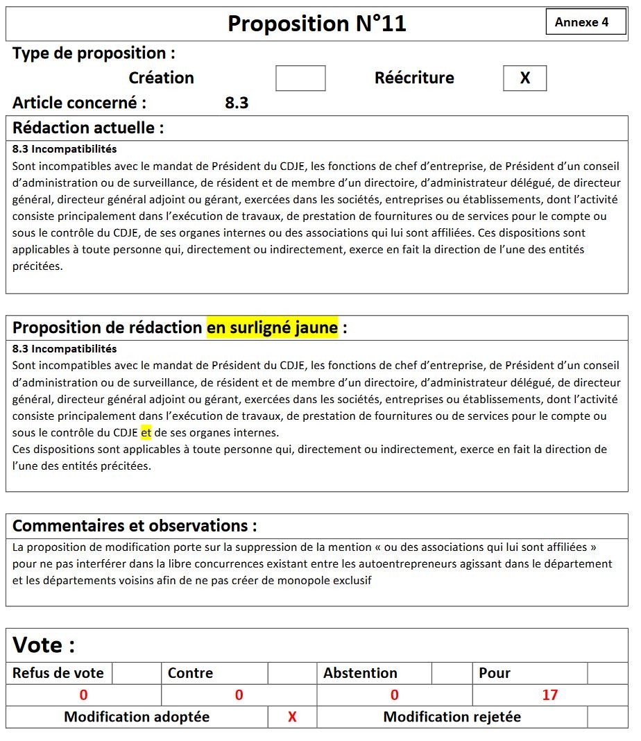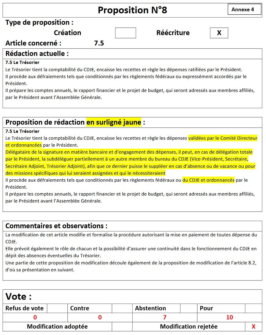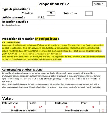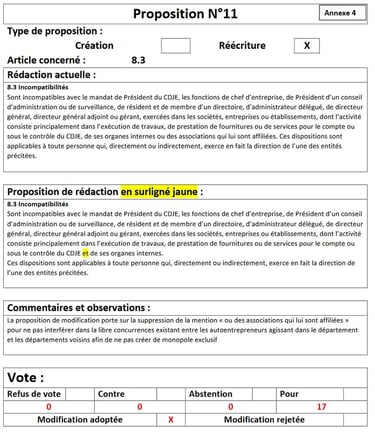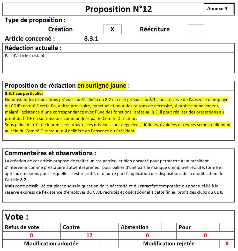 Sont refusées les propositions : 8, 10, 12
