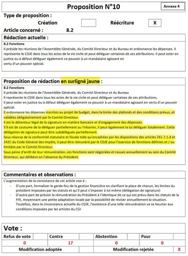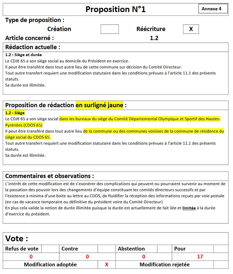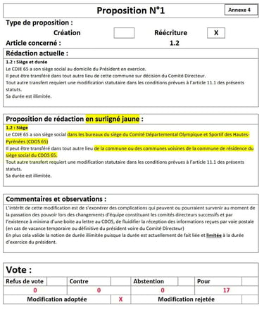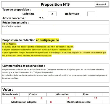 Vote des modifications des statuts